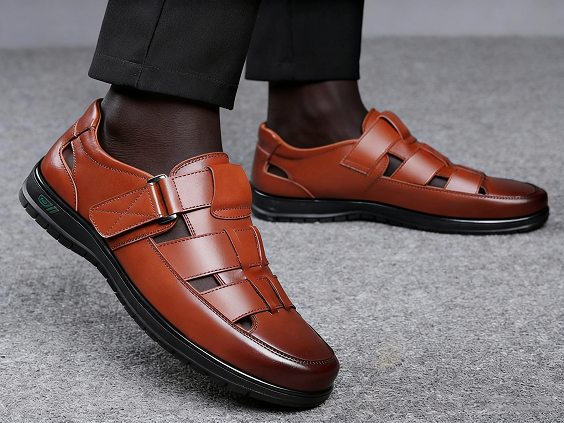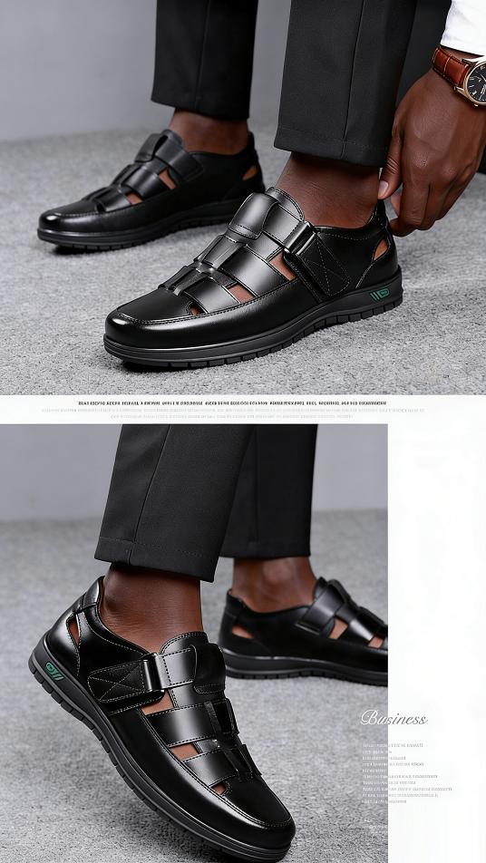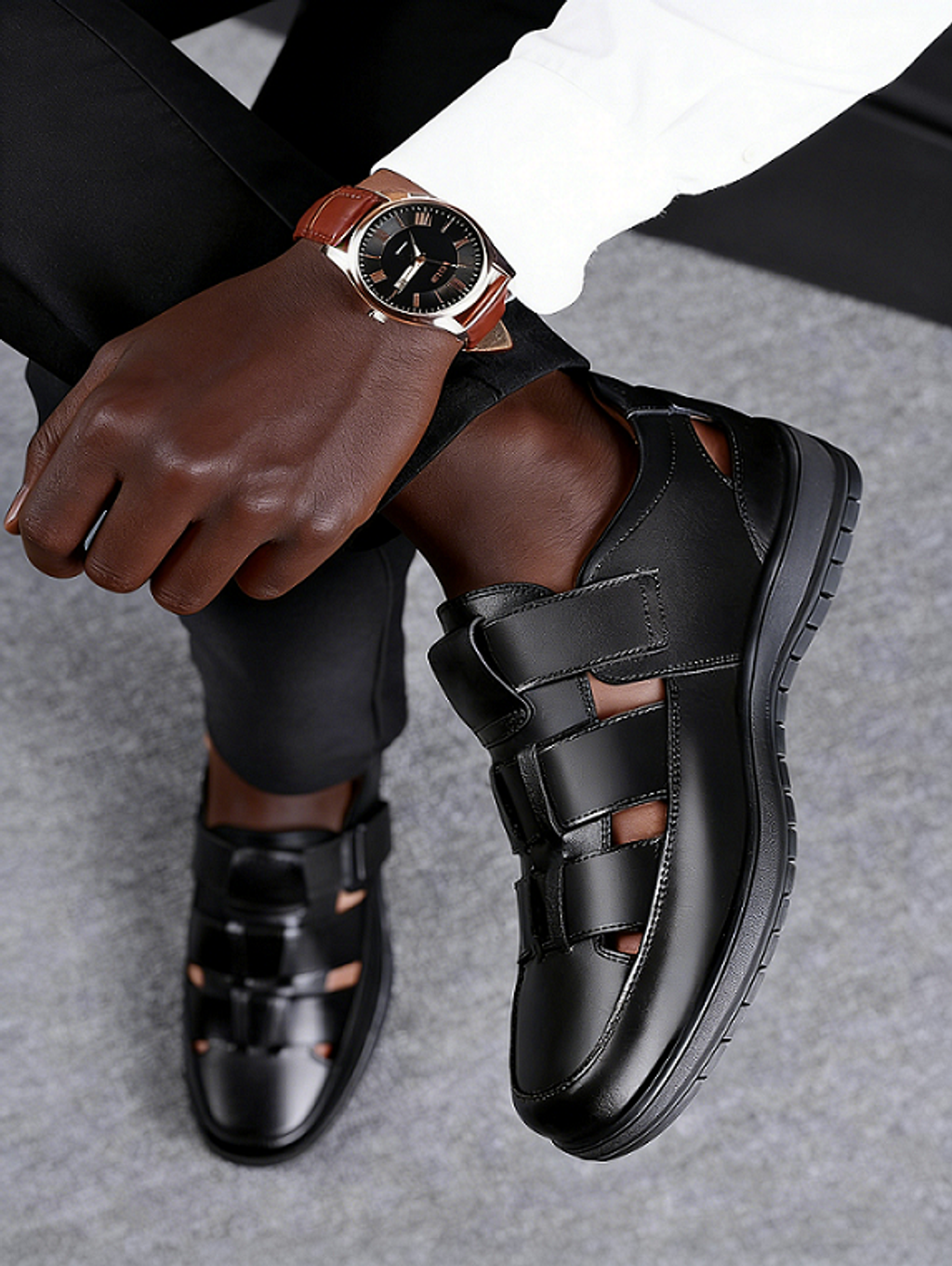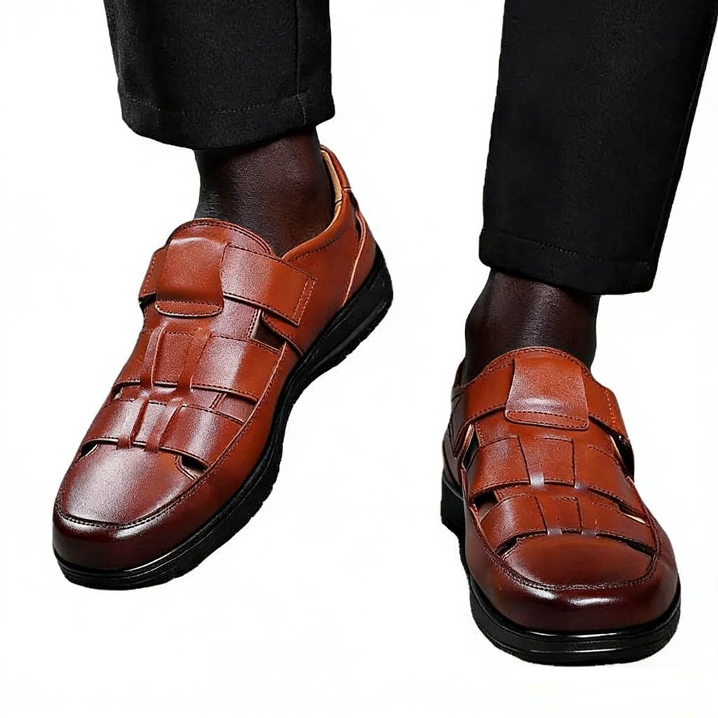 🔥Designed specifically for Ghana's climate🔥 Men's Genuine Leather Sandals|2026 Summer Breathable Open-Place Design, Wide-Foot Friendly, Lightweight and Durable