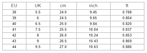 Tip: If feet are wide or between sizes, choose one size up. Match by cm for best fit.