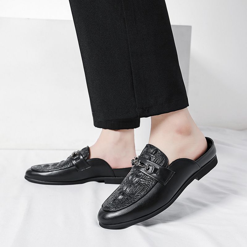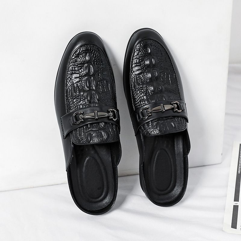 ✨ Mens Crocodile-Pattern Leather Slide Sandals – Stylish Breathable Anti-Odor Summer Footwear | 50% OFF