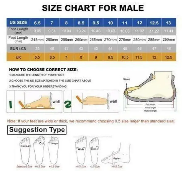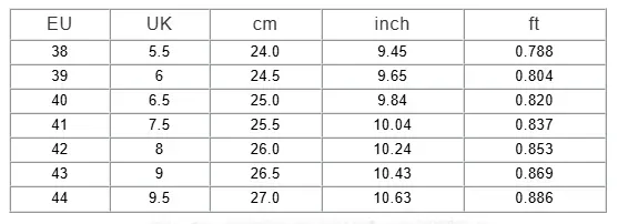 Tip: If feet are wide or between sizes, choose one size up. Match by cm for best fit.