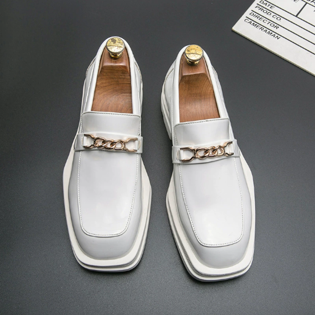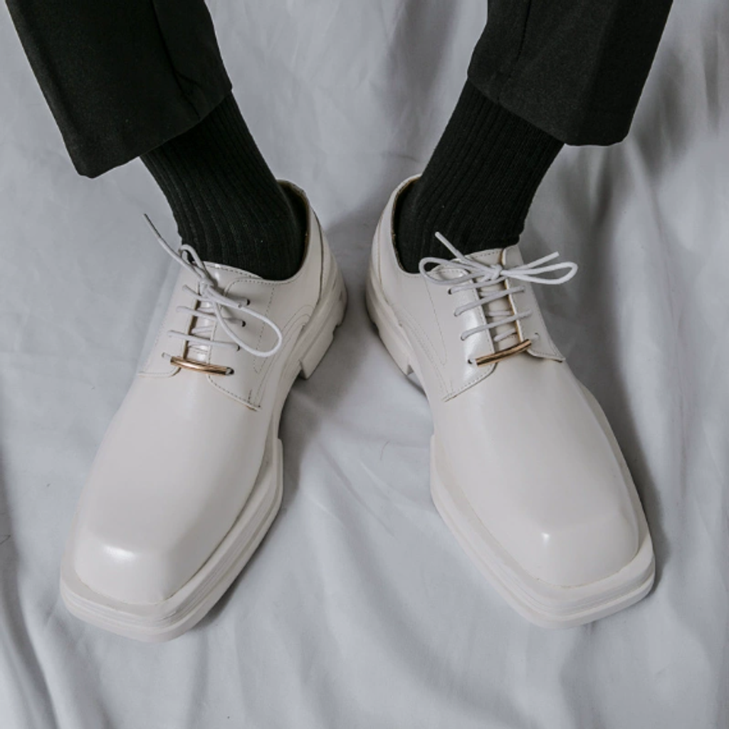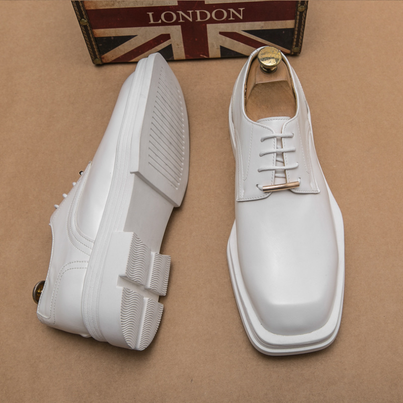 Men's premium pure white square-toe leather shoes· EU 38–44